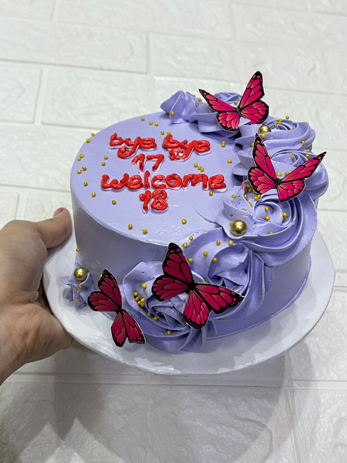 This Bye Bye 17 Welcome 18 Purple Butterfly Cake is Ideal for Birthday Parties